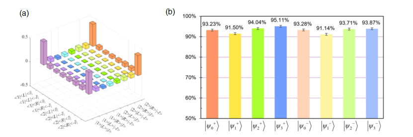 在此基础上,该团队重构了理论和实验所得密度矩阵,数值计算其对应的保真度,实验测得结果可达95%,如图3所示。