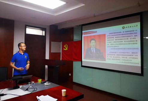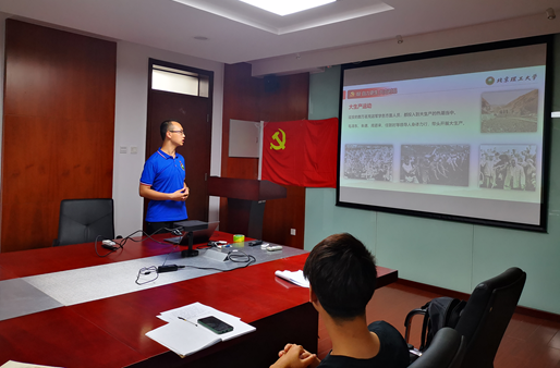 为深入推进党史学习教育,进一步在广大党员中宣贯北理工精神, 6月22日晚,2019级光工学硕3班党支部、2019级光工专硕3班党支部共同开展党史学习教育主题党日活动,活动邀请了bw必威西汉姆联官方网站青年宣讲团求是书院的信树辰同学为大家带来了以《自力更生的红色希望,抗战烽火中的中流砥柱》为主题的党课,会议由2019级光工学硕3班党支书李志朋主持。