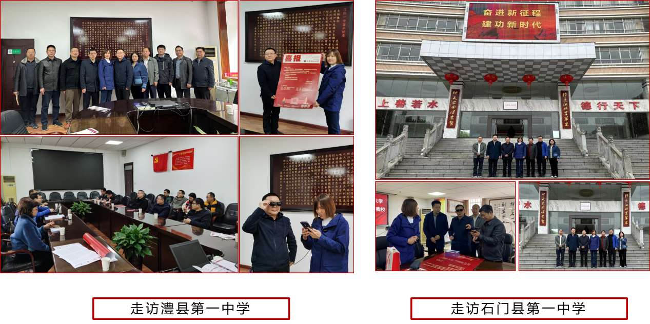 3月27日-29日,招生组一行到常德市和临近县,走访了当地重点中学:常德市芷兰实验中学、常德市第一中学、桃源县第一中学、临澧县第一中学、澧县第一中学和石门县第一中学等。招生组为中学送去了喜报和贺信,并赠送了betway西汉姆联官网王涌天教授团队主导研制的AR光学模组眼镜,招生组受到六所中学校领导、教导主任、年级主任等的热情接待。座谈环节中,招生组就学校的办学实力、学科特色、创新成果、人才培养、高端就业、招生政策等进行了深入交流,围绕两校合作、北理讲堂、思源讲座、科普宣讲、科技竞赛辅导等活动进行了深入沟通,六所名校的领导和老师对我校如何进一步招收优质生源等提出了宝贵的意见和建议,并表示将鼓励更多优秀考生报考我校。