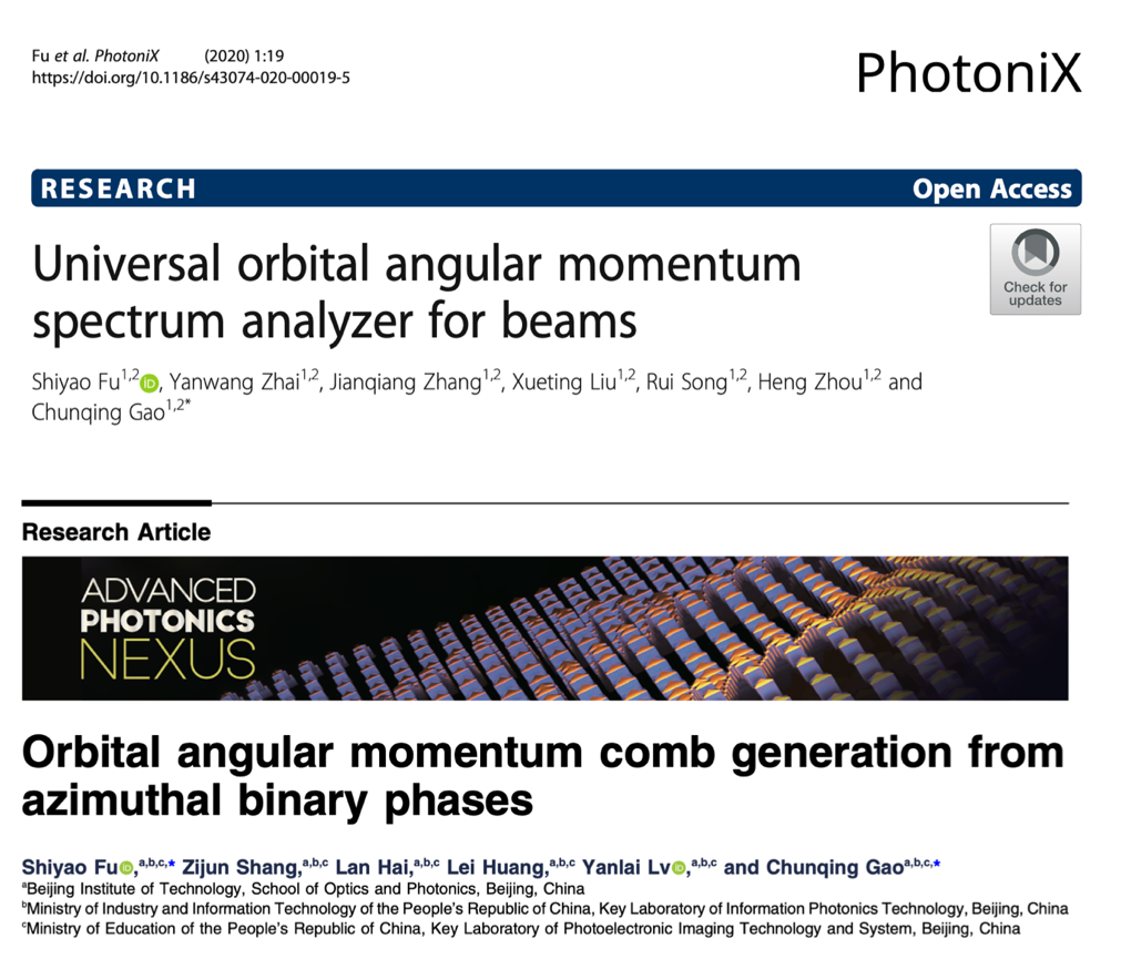 光束所携带的不同OAM成分的强度比重构成了光束的OAM谱,OAM谱是描述光束OAM分布特性的重要指标。由于不同OAM分布的涡旋光束在同一应用场景下会展现完全不同的性能,因此光束的OAM谱的准确测量是其应用的重要基础。然而,当前有报道的光束OAM谱的测量技术通常只针对具有圆对称性的横向光场分布的光束,对于任意光场分布的光束泛化能力不够。针对这一问题,该团队从光束OAM谱的定义出发,提出了光束OAM谱的通用测量技术,可适用于任意复杂光场分布光束的OAM谱测量。在测量过程中,只需引入以参考光束与待测光束同轴干涉,通过测量干涉场及带相移的干涉场分布即可获得待测光束的OAM谱。该工作为OAM光通信系统接收端的准确译码等一系列应用场景提供了全新解决方案,发表于SCI一区刊物PhotoniX。付时尧副研究员是该文的第一作者,高春清教授为该文的通讯作者。