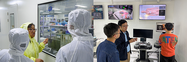 分论坛集中交流结束后,学院邀请线下参会的海外青年学者参观了光电实验中心超净间和北京混合现实与新型显示工程技术研究中心混合现实智能医疗实验室,各实验室负责人向青年学者们详细介绍了科研项目开展、运行模式、支撑的研究方向等内容,青年学者们也与现场的教师和学生们进行了深入热烈的交流,分享科研经验。
