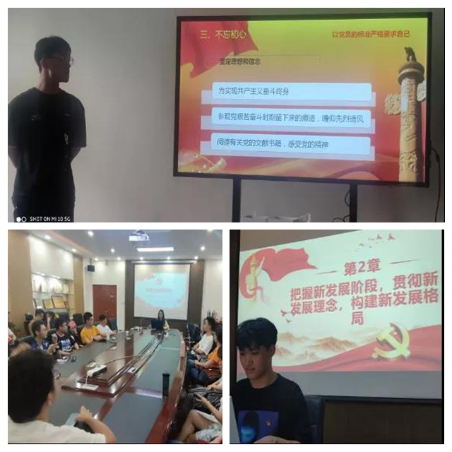在迎接党的百年华诞之际,支部面向全体党员开展了“我来讲党课”系列活动。党员们分别准备,并在支部会议上讲述了党在不同时期的伟大斗争、党在危急时刻的伟大转折、党史中力挽狂澜的伟大人物等。讲述即学习,在分享的过程中,党员们充分准备,潜移默化地加深了对党史的认识理解;聆听有收获,在倾听的过程中,党员们时而低头深思,时而热血沸腾,在学习党史中实现了精神洗礼。通过支部党员的互相分享,党员们将党史、校史内化于心,充分明确了使命担当,自觉向“胸怀壮志、明德精工、创新包容、时代担当”的领军人才的看齐、迈进!