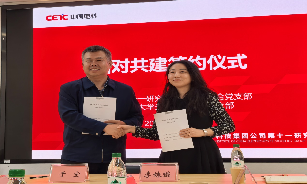 会上,中电科十一所人力保密联合党支部与学院机关党支部开展了支部结对共建协议签约活动。两个支部将紧密合作,积极开展联学共建活动,推动十一所与betway西汉姆联官网合作的顺利开展。