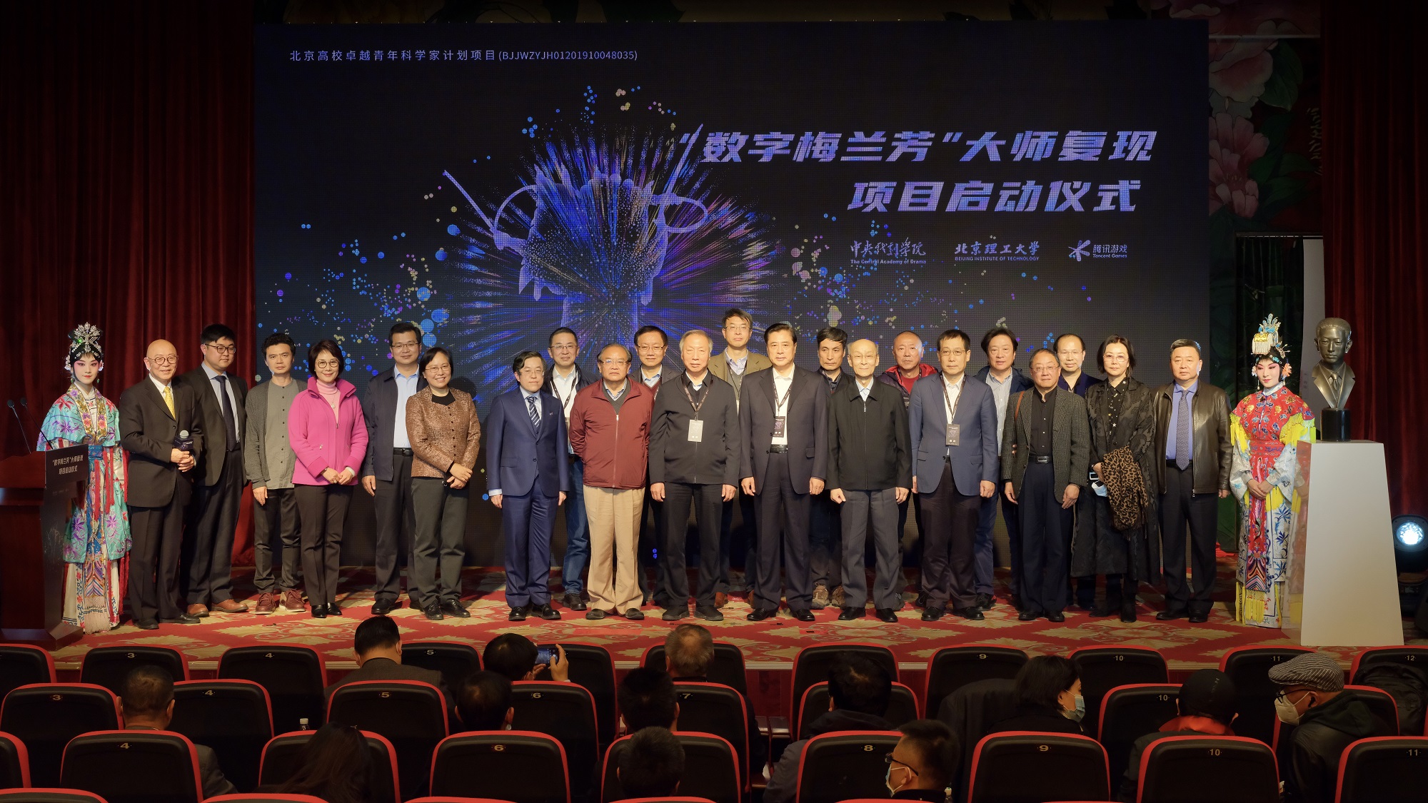 10月28日,“数字梅兰芳”大师复现项目启动仪式在北京梅兰芳大剧院举行,由bw必威西汉姆联官方网站参与研制的全国首个高精度京剧数字人梅兰芳孪生数字人惊艳亮相。“梅兰芳孪生数字人”项目由中央戏剧学院、bw必威西汉姆联官方网站共同发起,腾讯公司提供技术支持,受到“北京高校卓越青年科学家”计划资助,并得到了中科院自动化研究所、中央美术学院、北京外国语大学等单位和梅兰芳先生家人及弟子的大力支持,赵沁平院士等专家莅临现场并给出指导意见。