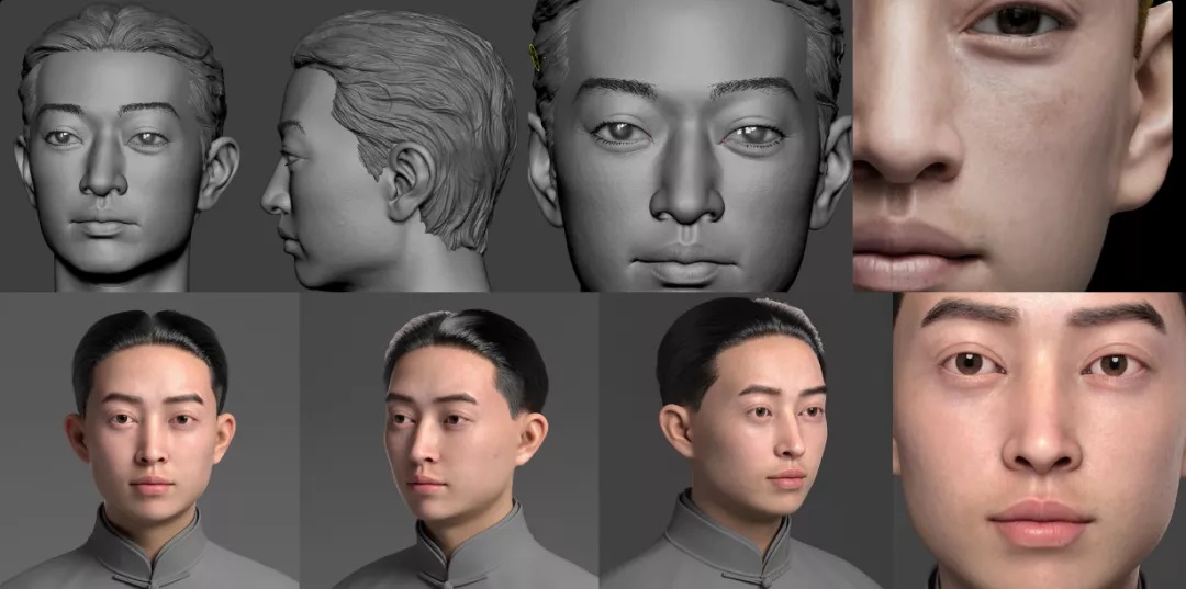二是让雕像真起来,通过高精度激光扫描仪对雕像进行扫描,获得梅先生的基础表情后,通过数字化雕刻流程对模型的细节进行处理,特别是对模型骨像、皮肤细节、毛发细节、眼神光等细节进行补充完善。