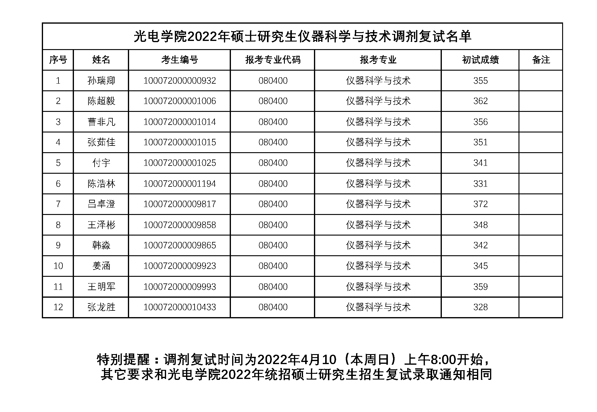 betway西汉姆联官网2022年硕士研究生仪器科学与技术调剂复试名单