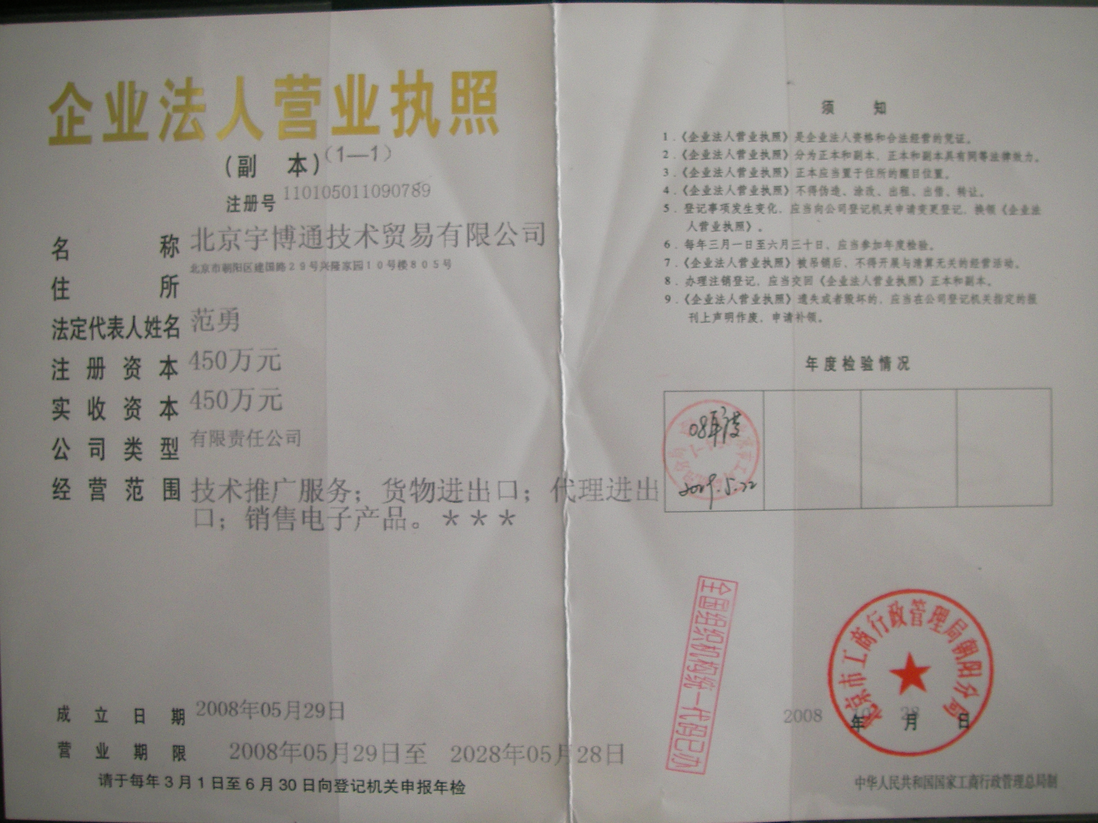 北京宇博通技术贸易有限公司是国家对外经济贸易合作部授予外贸流通进出口权的外贸公司,也是集高科技产品开发,高技术产品代理与国际化销售于一身的新兴技工贸企业.公司下设开发部,销售部与国际业务部等.